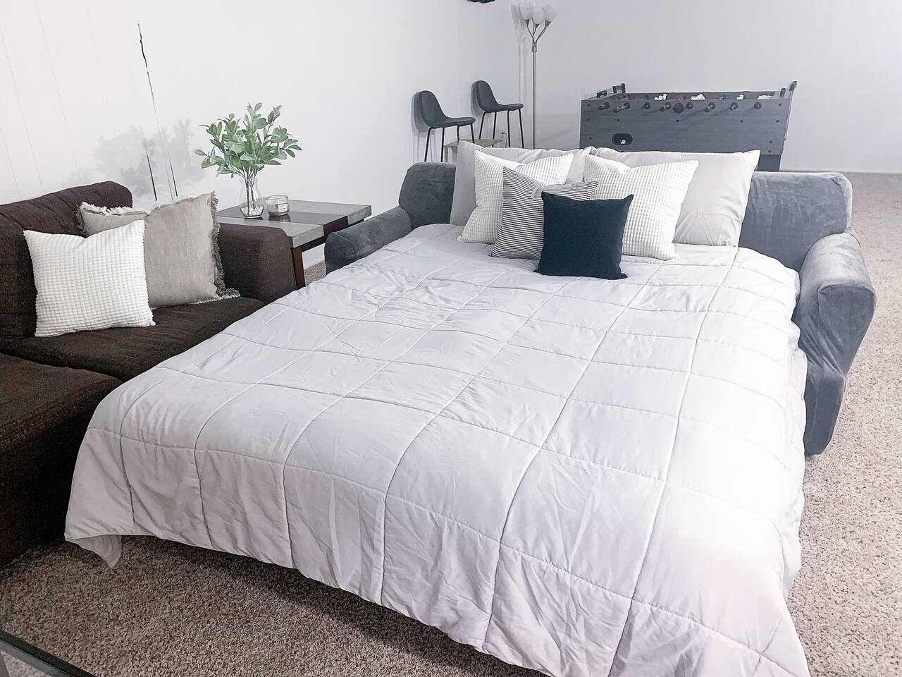 UPCOMING EVENTS: ✦ World of Winter: Jan 15 - Mar 1 ✦ 20th Annual Beer Festival: Feb 28 ✦ Laughfest 2026: Mar 11 - 15 ✦ GR Latern Festival: Apr 8 - Jun 14 ✦ Tulip Time Festival: May 1 - 10 ✦ MI Cider Week: May 8 - 16 Enter via keyless entry, and discover a contemporary ambiance with thoughtful finishes, designed to create a relaxing atmosphere for your group. Our space is equipped with every amenity and essential you could desire including a Fully Stocked Kitchen, a Washer/Dryer, Cozy Seating Surrounding the 50" Smart TV, a Foosball Table, a Private Backyard, and more! Enjoy complete privacy during your unforgettable trip to Grand Rapids, with no shared spaces with the Duplex's other half. Key Features that define your exceptional experience include: ✦ Equipped Kitchen: Prepare delicious meals with ease using high-end appliances. ✦ Well-Stock Coffee Bar: Wake up & Enjoy a Hot Cup of Coffee or Tea ✦ Stay Connected: High-speed WIFI throughout the property ✦ Entertainment Galore: 50" TV with Firestick and all major streaming apps ✦ Games & Fun: Foosball Table & Card and Board Games ✦ Convenient Washer & Dryer ✦ Ample Parking: Two Dedicated Spaces on the Driveway & Free Parking on the Street ✦ Backyard w/ Small Deck ✦ Fresh Towels & Bathroom Essentials ✦ 24-Hour Self Check-in via Smart Lock ★★Sleeping Arrangements★★ MAIN FLOOR: Bedroom 1: ★ King Bed w/ Ultra Plush Bedding Offering 5-Star Hotel Quality Comfort ★ Spacious Closet for Your Belongings Bedroom 2: ★ Queen Bed w/ Ultra Plush Bedding Offering 5-Star Hotel Quality Comfort ★ Spacious Closet for Your Belongings LOWER LEVEL: ★ Queen Sofa Bed Effortlessly navigate the city, all made possible by the convenient distances to nearby attractions: 𖡡 Frederik Meijer Gardens (1.6 Miles) 𖡡 Reeds Lake (3.1 miles) 𖡡 John Collins Park (3.1 miles) 𖡡 Fulton Street Farmers Market (3.5 miles) 𖡡 Brewery Vivant (4.0 miles) 𖡡 Robinette’s Apple Haus & Winery (4.1) 𖡡 Grand Rapids Children's Museum (4.8 miles) 𖡡 Devos Place (4.8 miles) 𖡡 Kilwins Downtown Grand Rapids (Ice Cream) - (4.8 miles) 𖡡 Van Andel Arena (4.9 miles) 𖡡 Grand Rapids Public Museum (5.1 miles) 𖡡 Founders Brewing Company (5.7 miles) 𖡡 Grand Rapids Downtown Market (6.1 miles) 𖡡 John Ball Zoo (6.7 miles) 𖡡 Blandford Nature Center (7.1 miles) 𖡡 Millennium Park (10.6 miles) Discover the endless opportunities for adventure and relaxation during your stay in Grand Rapids!