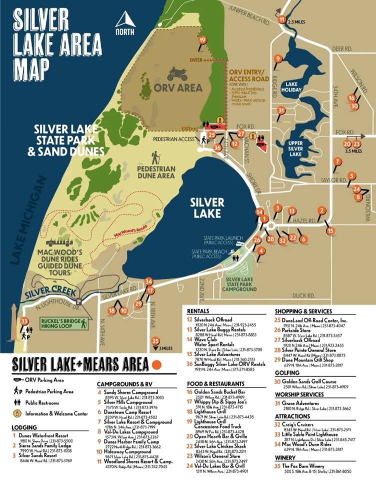 The home is located on the main road running alongside Silver Lake. You will be within walking distance to the Sand Dunes, Public Beach, Little Sable Point Lighthouse, Restaurants, and more. The location of the home can't be beat!