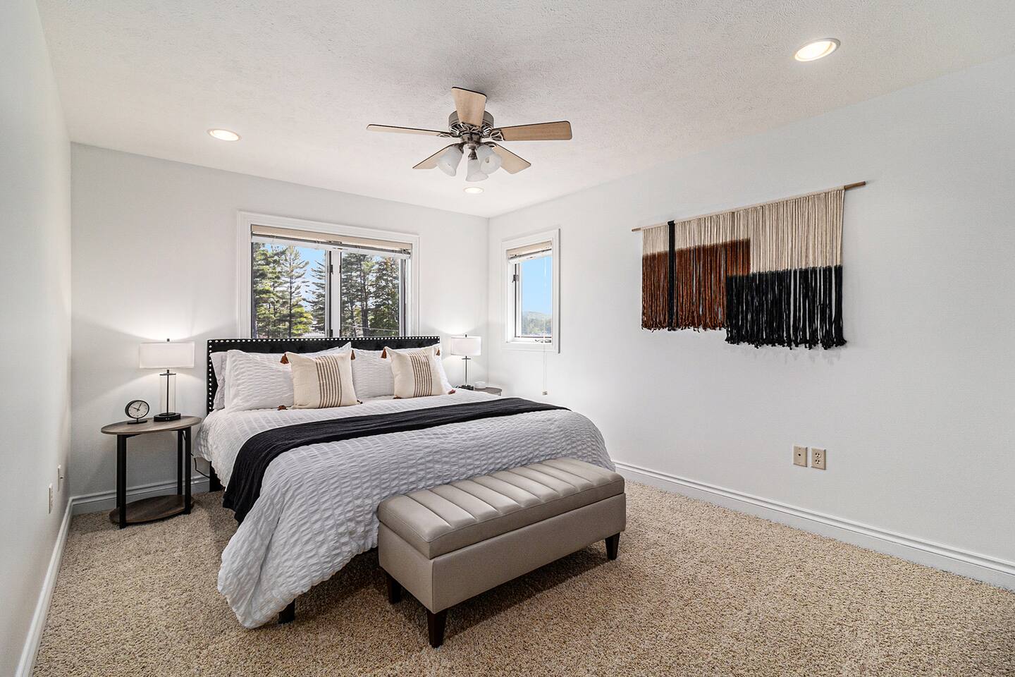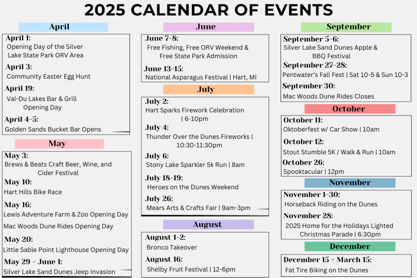 Event Calendar 2025: ◆ Apr 1: Opening Day of Silver Lake State Park ORV Area ◆ May 3: Brews & Beats Craft Beer, Wine, and Cider Festival ◆ May 16: Mac Woods Dune Rides Opening Day ◆ May 20: Little Sable Lighthouse Opens ◆ May 29 - June 1: Silver Lake Sand Dunes Jeep Invasion ◆ Jun 13-15: National Asparagus Festival ◆ Jul 2: Hart Sparks Firework Celebration ◆ Jul 4: Thunder Over the Dunes Fireworks ◆ Jul 6: Stony Lake Sparkler 5k Run ◆ Jul 18 - 19: Heroes on the Dunes Weekend ◆ Aug 1-2: Bronco Takeover ◆ Sep 5-6: Silver Lake Sand Dunes Apple & BBQ Festival ◆ Sep 27-28: Pentwater's Fall Fest ◆ Oct 11: Oktoberfest w/ Car Show ◆ Oct 26: Spooktacular ◆ Nov 1-30: Horseback Riding on the Dunes ◆ Dec 15- Mar 15: Fat Tire Biking on the Dunes Whether You're Looking for a Peaceful Retreat or an Active Vacation, the Silver Lake Retreat is the Perfect Destination to Create Unforgettable Memories with Family or Friends. Perhaps the Best Feature of this Property is the Ability to Anchor Your Watercraft or a Rented one on your Own Private Dock. Take a Short Leisurely Stroll to Nearby Attractions, such as the Water Sports Rentals, Dunes and Dune Rentals, Public Beach, Craig's Cruisers, Mini Golf, Restaurants/Cafes, Ice Cream Shops, and more! Stepping into our Expansive 3,340 sqft Home, you will find a beautiful Entryway and Hallway Leading you to many Spaces of the Home. Heading down the Hallway, you will Discover the Open-Concept Living Space with Floor-to-Ceiling Windows Featuring Incredible Views of the All-Sports Lake and Dunes. Curl up Near the Beautiful Stone Fireplace at Night, and Kick Back on the Spacious Sectional to Watch your Favorite Movies, Shows, and Sports on our 65" Smart Roku TV. Our Beautifully Appointed Kitchen Features Marble Countertops, New Stainless Steel Appliances, and Everything you may Need to Cook a Fantastic Meal. Gather Around our Gorgeous Oak Table with Seating for 6, and Utilize the Additional 5 High-Top Chairs Surrounding the Island to Share a Meal. Wake up and Enjoy a Delicious Cup of Coffee/Tea from our Keurig Coffee Machine, out by the Lake, and Finish the Day Sitting Around the Built-in Firepit with S'mores. The Main Floor also Features a Large Laundry Room with Ample Counter Space for Folding Laundry, as well as an Attached Full Bathroom. With 5 Bedrooms, 4.5 Bathrooms, and 9 Total Beds your Group can Comfortably Spread Out and Relax Among Our Beautifully Appointed Spaces. Bedroom Breakdown: ★ Master Bedroom: Located on the Main Floor, Featuring a Stunning King Bed, a Spacious Walk-In Closet with Custom Built-ins, a Large Ensuite Bathroom Featuring a Shower & Jacuzzi Tub, a White Noise Machine, and a Ceiling Fan ★ Bedroom 2: Located on the Main Floor Featuring 2 Adorable Twin Beds, and a Spacious Closet for Your Belongings, and a Half-Bath Right Outside of the Bedroom ★ Bedroom 3 Upstairs: Features a Beautiful King Bed, a Sizeable Closet with Built-Ins for Your Items, a White Noise Machine, a Ceiling Fan, and Direct Access to the First Full Bathroom Across the Hall ★ Bedroom 4 Upstairs: Features a Charming King Bed, Ample Closet Space, a White Noise Machine, a Ceiling Fan, and Direct Access to the First Full Bathroom Across the Hall ★ Bedroom 5 Upstairs: Features a Lovely King Bed, Spacious Closet, White Noise Machine, a Ceiling Fan, and Conveniently Located Next to the Second Full Bathroom ★ Upstairs Loft: A Cozy Twin Day Bed with a Trundle Bed, a Queen Sofa Bed, a 50" Smart TV, a Nintendo Switch, and an Assortment of Games ** Please note: there is a small residential road with a 25 mph speed limit between the home and the dock/lakeside patio. It is a safe, family neighborhood road that is consistently monitored due to its proximity to Silver Lake State Park, and many families with children live along this road. Amenity Highlights: ◆ Spacious Property to Hold 14 guests ◆ 5 Bedrooms, with 9 Total Beds ◆ Large Private Dock & Waterfront ◆ Built-In Firepit ◆ Complementary Bundle of Firewood & S'mores Essentials Provided! ◆ Propane Grill & Tools ◆ Spacious Fully Equipped Kitchen ◆ Yard Games: Cornhole, Kan Jam, Ladder Toss, and Spikeball ◆ Beach & Lounge Chairs, Life Jackets, and Beach Towels ◆ Jacuzzi Bathtub ◆ Ping Pong Table ◆ Nintendo Switch Console ◆ 2 Smart TVs w/ major streaming apps for you to sign in and stream ◆ Washer & Dryer ◆ Keurig Duo Nearby Attractions: ● Wave Club Water Sports Rental: 0.1 Miles Away ● Craig's Cruisers: 0.3 Miles Away ● Silver Lake Chicken Shack: 0.4 Miles Away ● Silver Lake Buggy Rentals: 0.5 Miles Away ● Silverback Off-Road Rental: 0.9 Miles Away ● Silver Lake Pizza Factory: 1 Mile Away ● Mac Wood's Dune Rides: 1.7 Miles Away ● Silver Lake Whippy Dip: 1.8 Miles Away ● Golden Sands Golf & Bucket Bar: 3.4 Miles Away ● Little Sable Point Lighthouse: 3.5 Miles Away ● Open Hearth Bar & Grille: 5 Miles Away