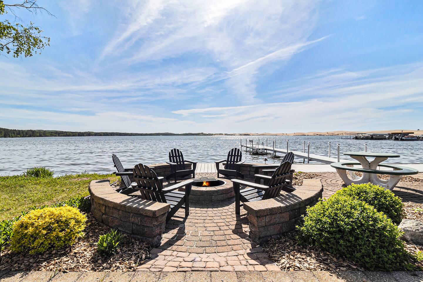 Upscale Lakefront Oasis: Dock, Dune Views, Firepit